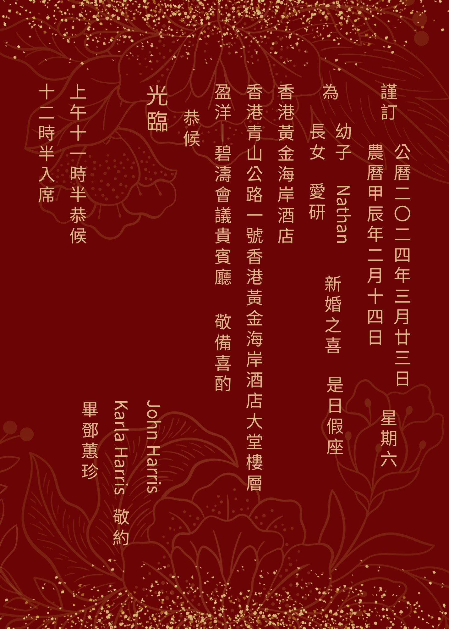 There will be a multi-course Chinese meal, a couple videos to watch, a few speeches, and lots of photo opportunities. Please budget 3 hours to eat, laugh, and mingle.